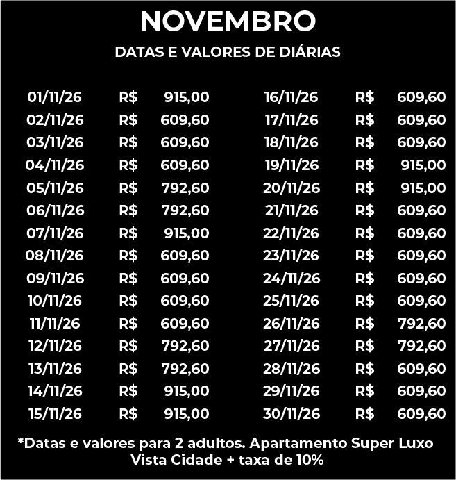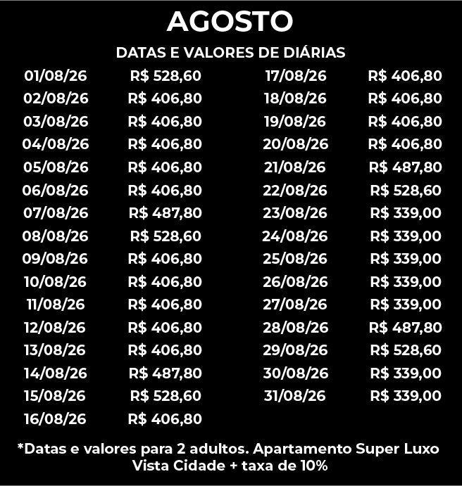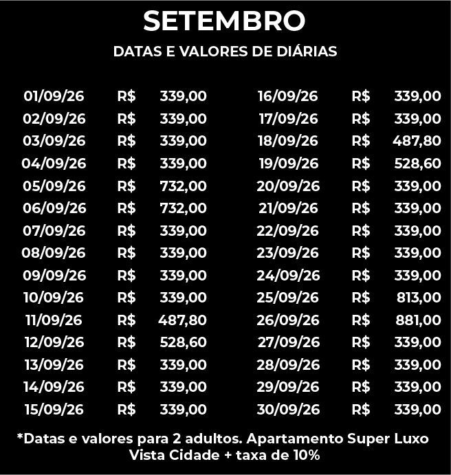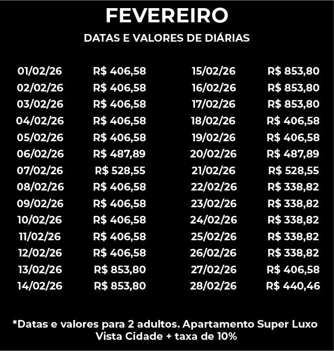 Por fazer parte da nossa lista exclusiva, você já pode reservar antes do público geral, com as melhores datas e condições.