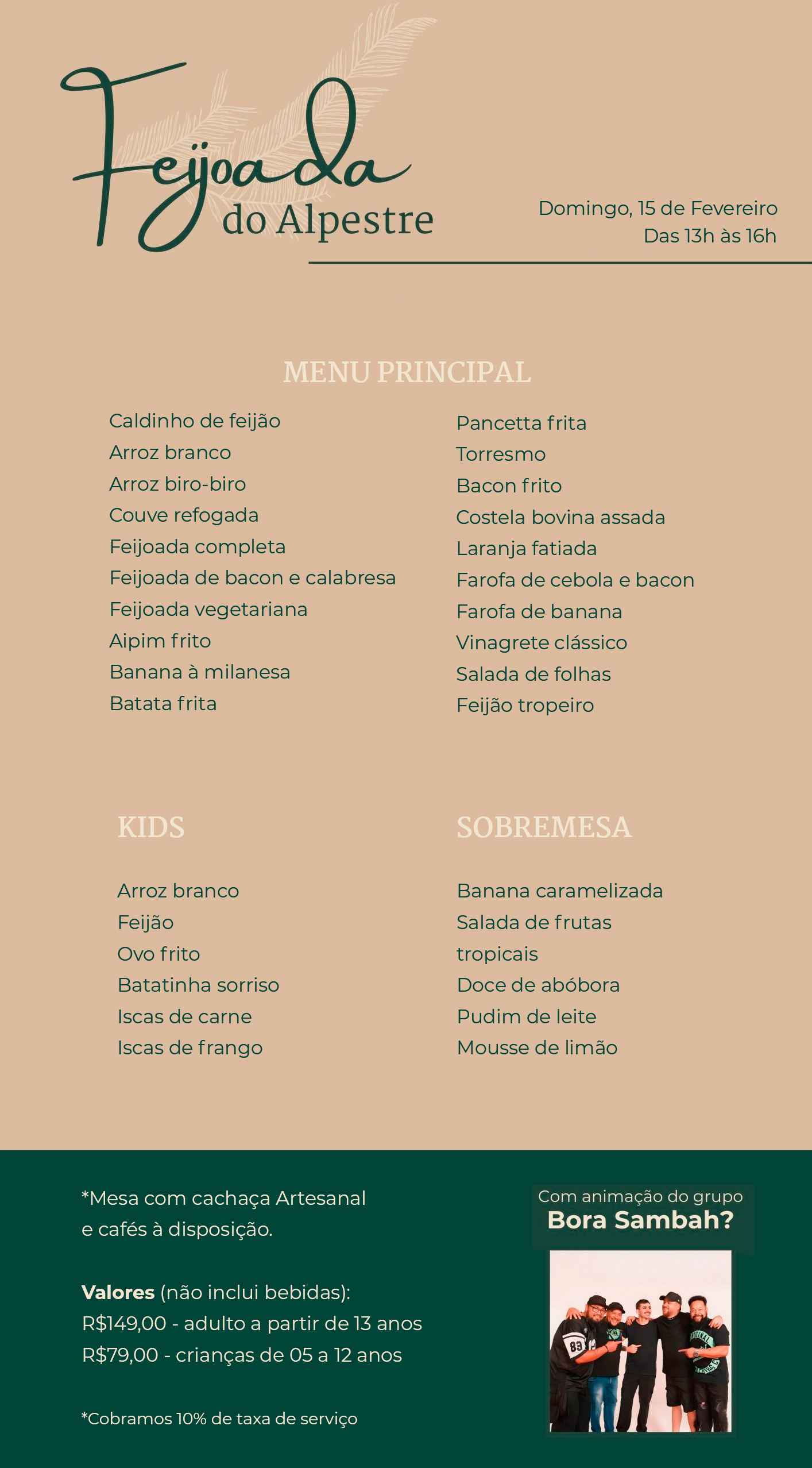 - Café da manhã em buffet até as 10h30min;