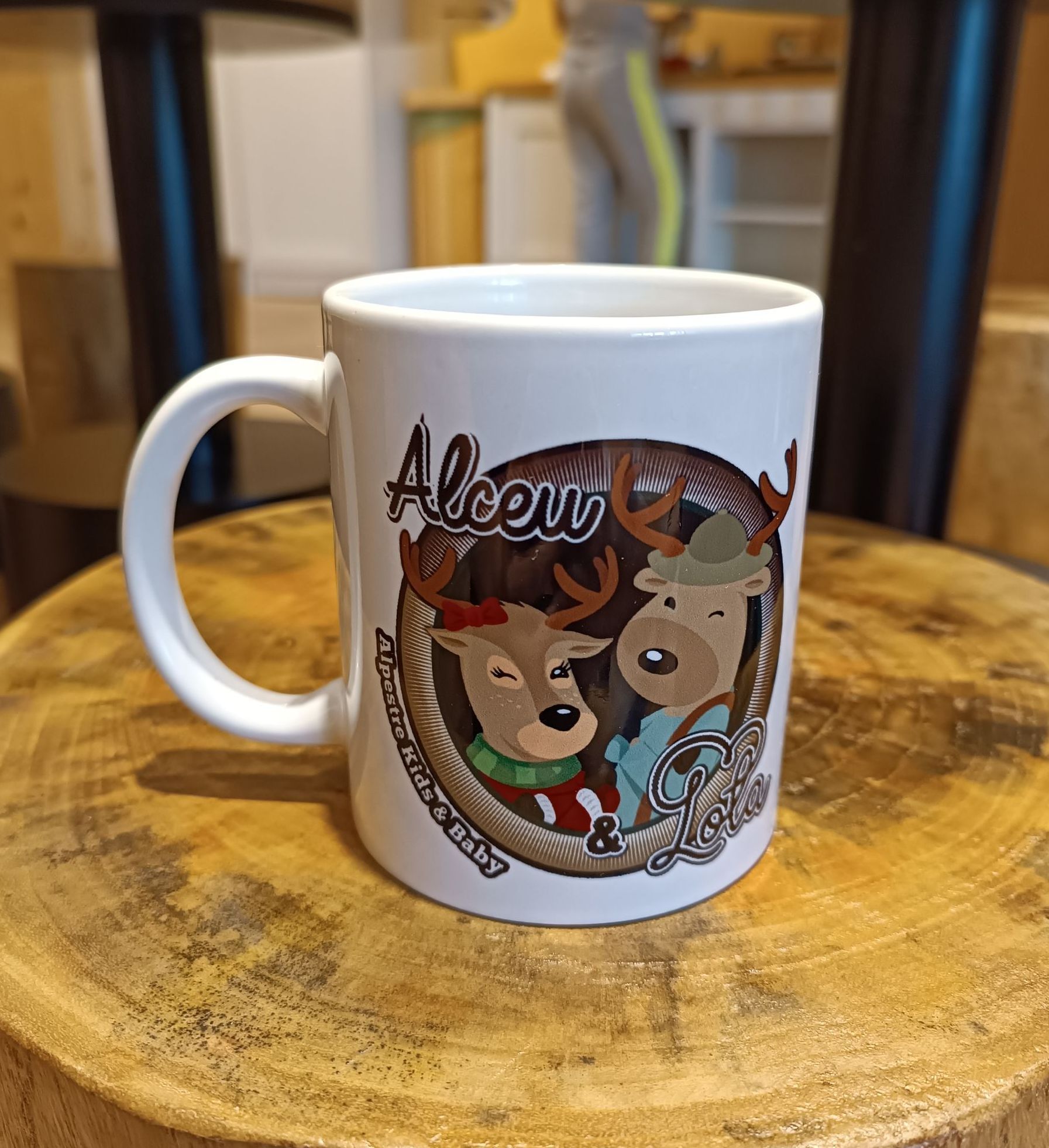 Uma divertida caneca com nossos mascotes Alceu e Lola